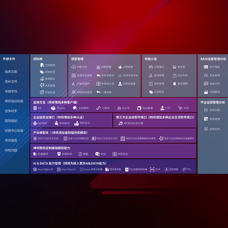 医疗器械产品上市前,,,,要熟悉严格与繁复评审标准,,,,整理分析监管机构指导文件中的海量信息。。。。企业急需一个智能化解决方案,,提升知识管理效率,,,,提高评审通过率,,,以提升其市场竞争力。。。